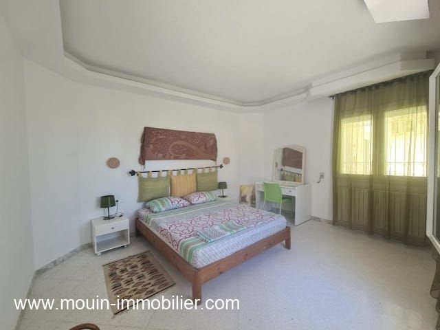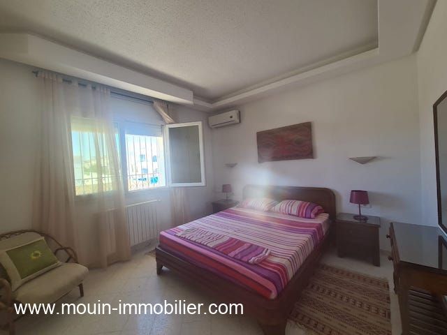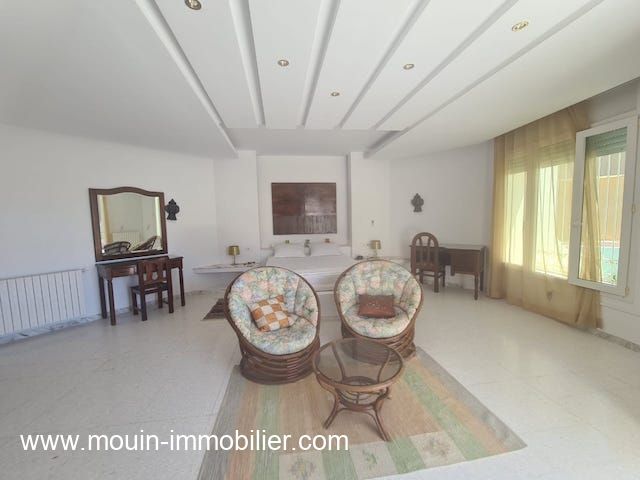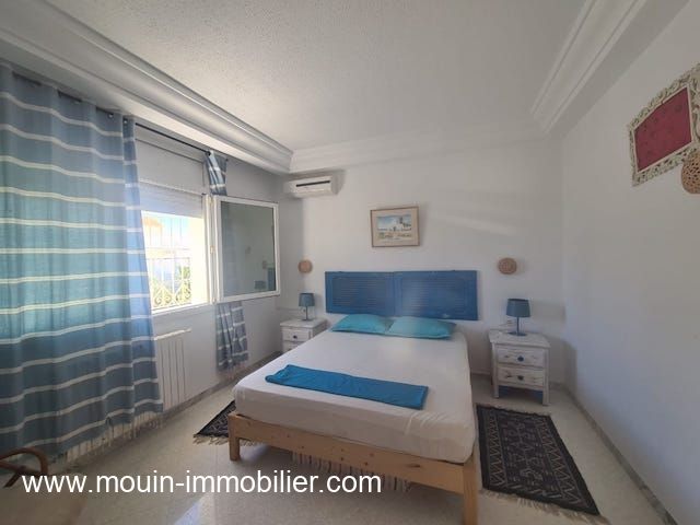 A louer pour des courtes durées une charmante villa avec piscine érigée sur deux niveaux et située à Hammamet Nord – zone Kharrouba dans un quartier résidentiel et proche des commerces.