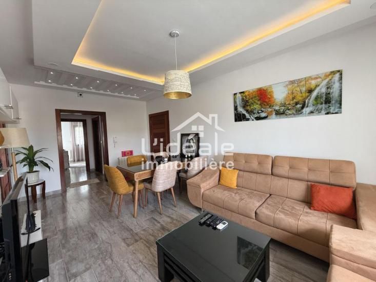 L’idéale Immobilière vous propose à la location un magnifique appartement S+2 haut standing, situé dans un quartier résidentiel chic et calme de Hammamet Nord, à proximité immédiate de la plage.