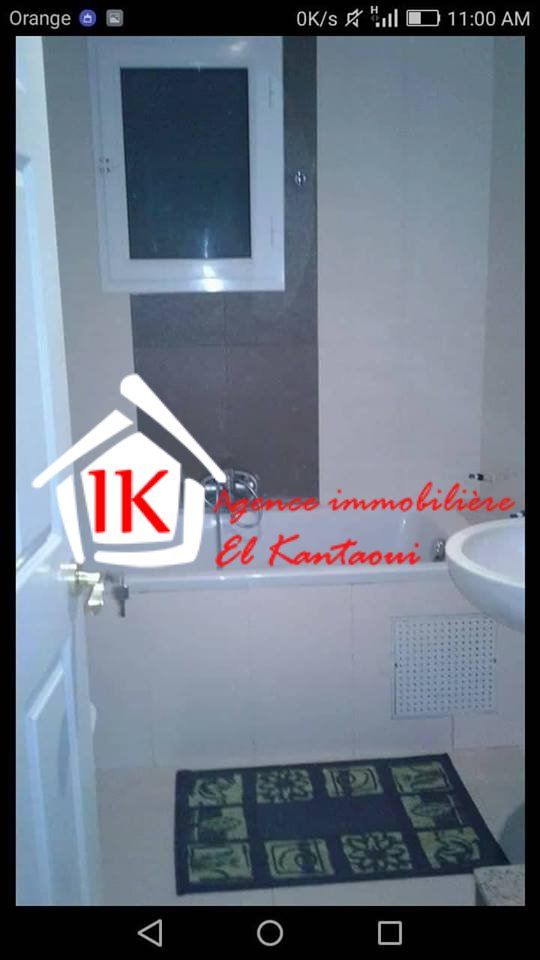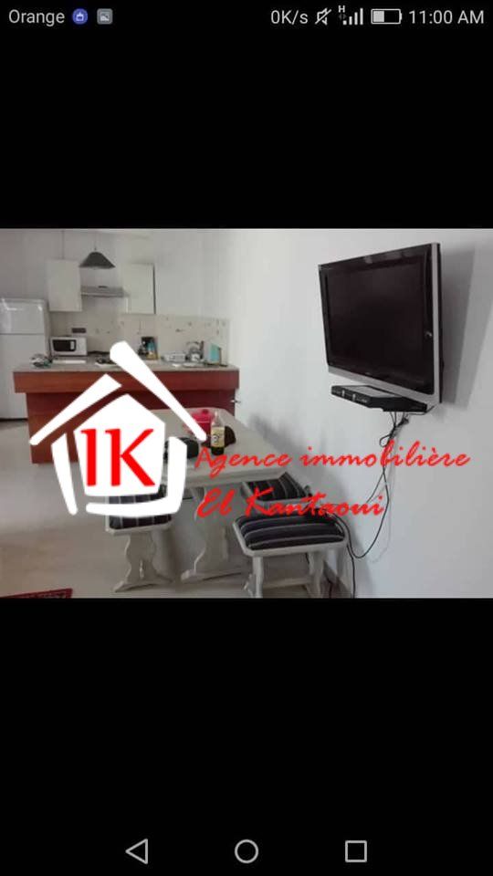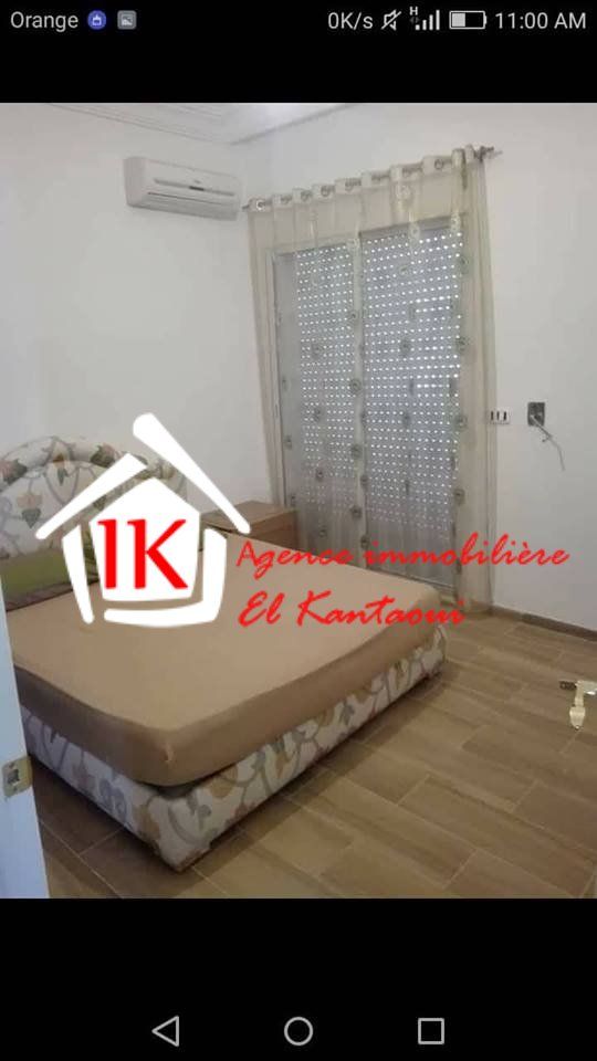l'agence immobilière el kantaoui met à votre disposition un joli et lumineux appartement meublé S+2 tout neuf de standing à tantana deuxième position de la mer prés de tous les commodités d'une superficie 100 m² d'une résidence calme, gardée , bien sécurisé et avec ascenseur et piscine , l’appartement est composé d’un grand salon dégagée,deux chambres à coucher ,une cuisine américaine est équipée avec des espaces de rangements et avec un séchoir et une salle de bain. Cet appartement a une place parking sous sol. Il est muni par menuiserie en aluminium et rideau électrique et trois climatiseurs . prix: 700 dt/ mois. Pour plus de détails merci de nous contacter agence immobilière el kantaoui
