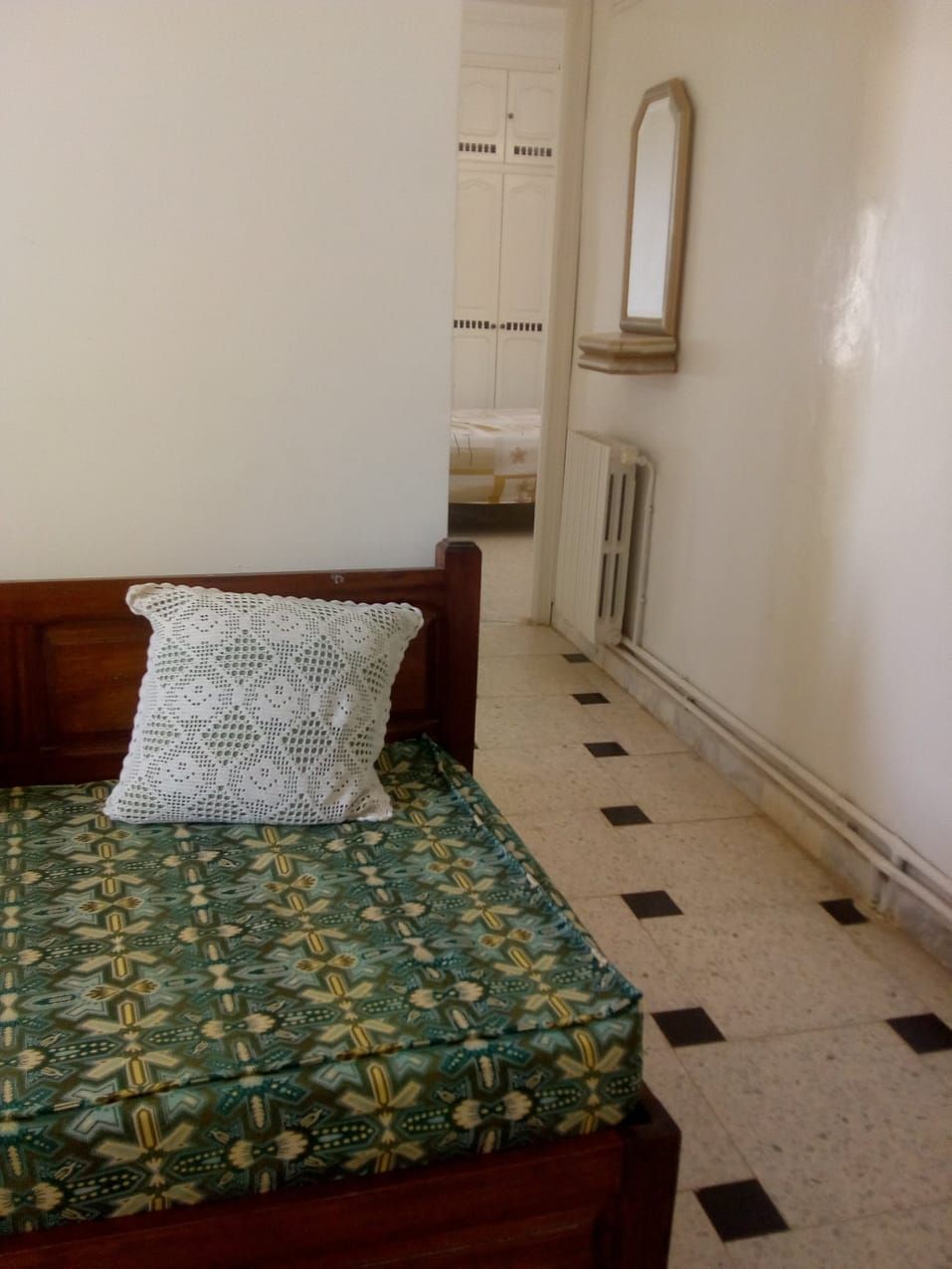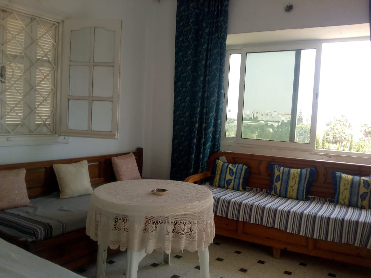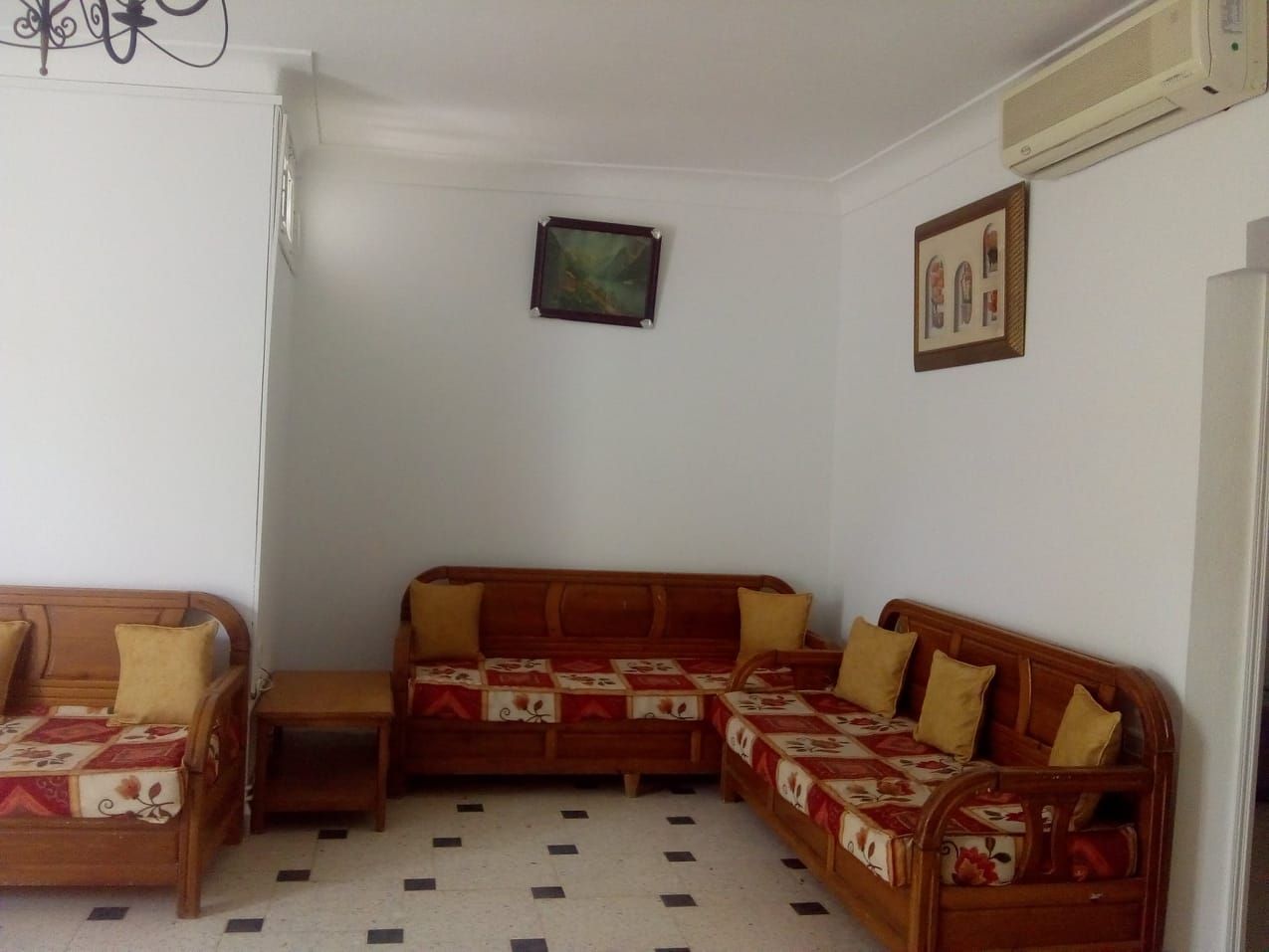 A louer RDC porche d’hôtel Aziza un beau RDC se compose chacun d’un salon avec climatiseur et une cuisine et une salle d’eau et trois chambres à couchers avec une terrasse avec un garage et un belle vue de mer à 5 min à la plage