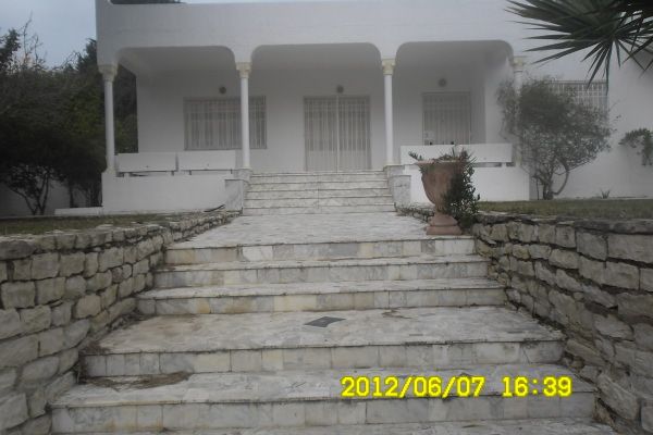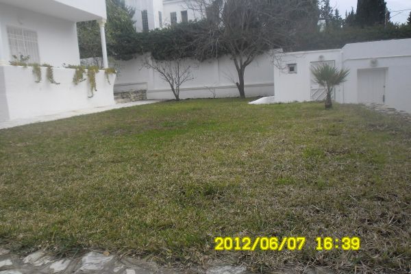 Une villa plein pied de à louer à Gammarth supérieur avec un grand jardin et deux studios pour le gardien et la femme de ménage, plus de détail: