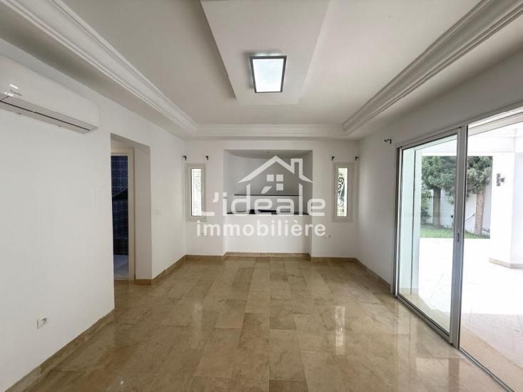 À louer à l'année chez L’Idéale Immobilière Hammamet, une splendide villa sans meuble, nichée dans un cadre paisible à Hammamet, sur la route menant vers Bir Bouregba.
