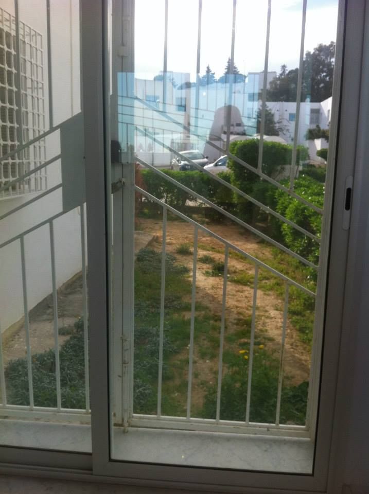A vendre, à Riadh Andalous, au rez de chaussée d' une résidence clôturée et gardée 24 h, un appartement de type S+3 faisant 110 m² de surface couverte, composé d'un assez vaste salon ouvrant sur un jardin, une cuisine, dressings au couloir, 3 chambres à coucher.