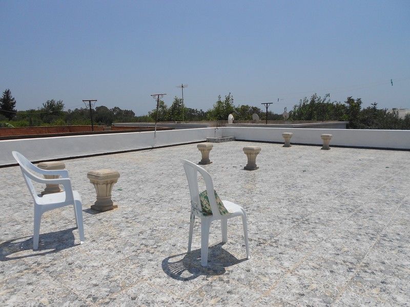 AV dans les alentours proches de Hammamet, une maison de campagne tr�s agr�able, et proche de la ville et des commodit�s. D�une superficie couverte de 110m� sur une superficie totale de 168m� et compos�e d�une petite v�randa sympathique, un grand salon, une grande cuisine avec courette arri�re, deux chambres � coucher, une salle de bain plus une douche ext�rieure. Le toit est am�nag� en une belle terrasse avec une vue d�gag�e sur la montagne et la campagne de Hammamet.