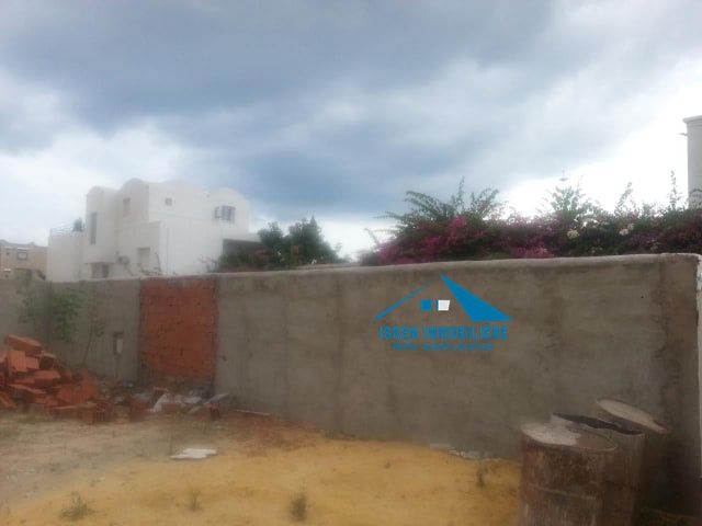 A vendre a Hammamet un terrain viabilisé+studio ; clôturé (autorisation de bature+ eau+saunde+ électricité+ gaz de vie) de superficie 466m2 orienté par la mer