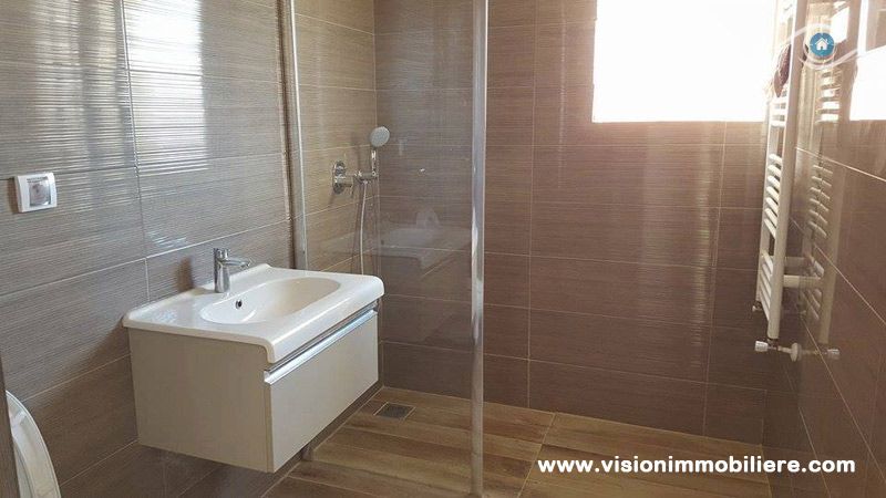 Vision Immobilière vous proposes,cet appartement à Hammamet Nord de charme occupe le deux Emme étage d’une résidence calme est bien gardée et proche de toutes les commodités, 2 min de la plage sidi mahrsi. L’entré possède un spacieux salon dispose un terrasse et des baies vitrées offre une vue panoramique. La cuisine est aménagée et bien équipée avec divers éléments de rangement nécessaire, et possède un séchoir. Le compartiment nuit est composé de deux chambres à coucher chacune possède son propre dressing. Elles se partagent une salle de bain avec cabine de douche. Un place de parking au sous-sol et disponible. Nb : le prix de place de parking 15.000DT .Pour une éventuelle visite, ou pour avoir plus d'informations merci de contacter votre conseiller en immobilier Hamza Khedira , de l’agence vision immobilier.