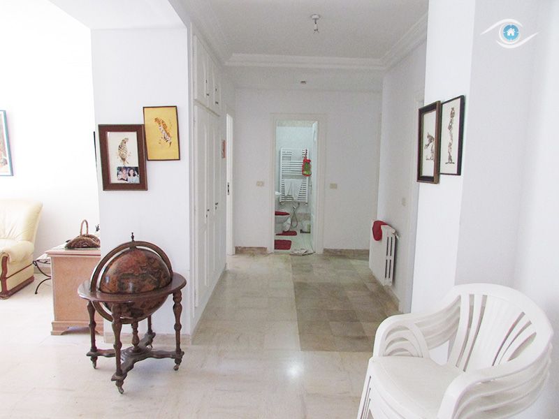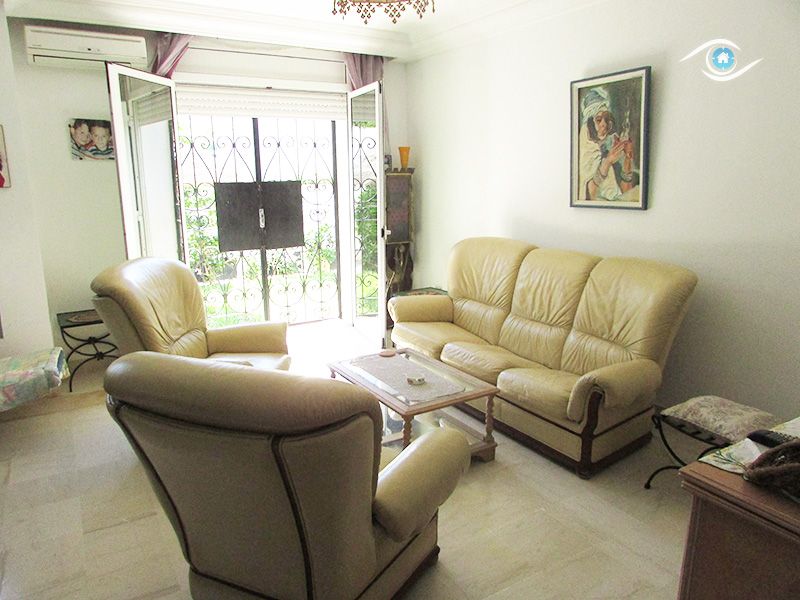 Vision Immobilière vous proposes, cet appartement au rée des chaussées d'une résidence de quelque mètre de la plage d'hammamet nord. La pièce de réception est lumineuse grâce à ses baies vitrées qui donnent sur le jardin. La cuisine est bien équipée par plusieurs éléments de rangement. Elle est complétée par un séchoir exploitable, une salle d'eau pour les invités complétés la partie jour. Le compartiment nuit dispose une suite parentale et une chambre à coucher avec leurs propres dressings. Une place de parcking sous-sol disponible.