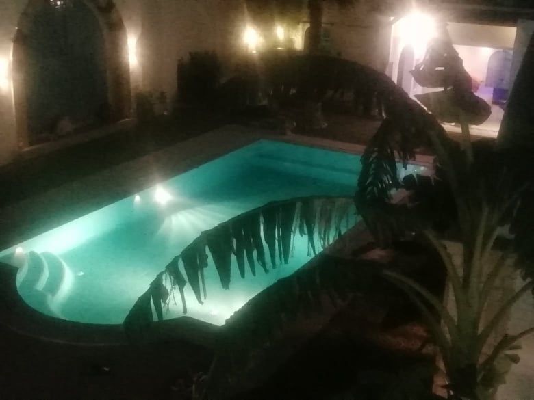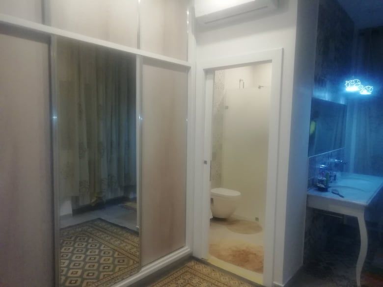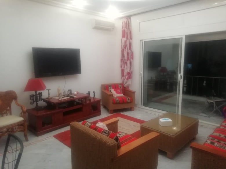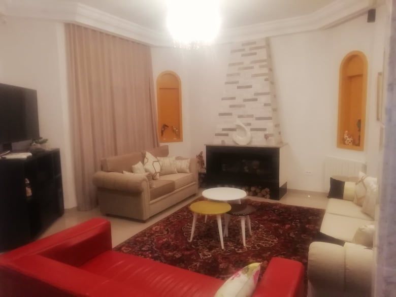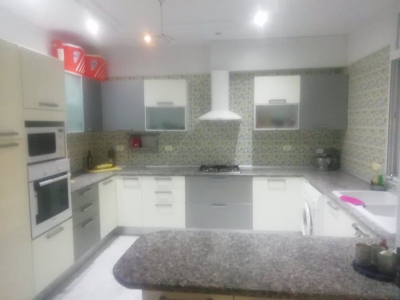La villa est bâtie sur un terrain de 750m2 et qui se compose de 3 suites présidentielles ; 2 salons ; une belle cuisine bien équipée ; grande terrasse et une grande piscine et un BBQ ; un salon de thé ; Hammam (Bain Maure) et un studio de gardé rage