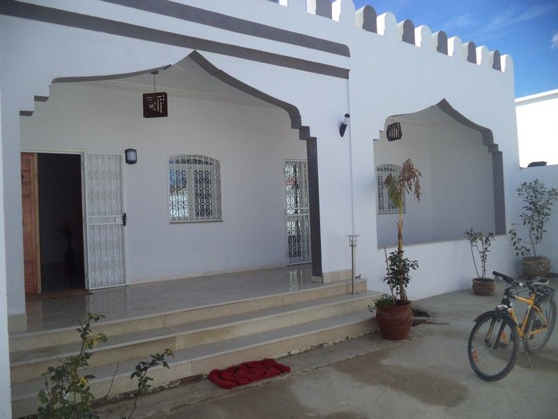 composée d'un haul, grand salon, séjour , deux chambres à coucher , cuisine bien équipée, salle de bain avec douche extérieure,avec entre d'une voiture et jardin de 350m2 .