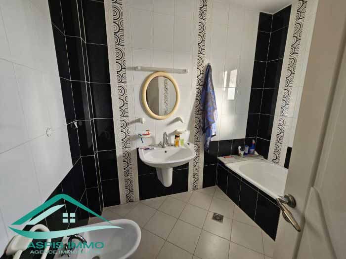 A vendre appartement au centre ville kelibia de superficie 157m² composé de trois chambres à coucher, salon, séjour, cuisine, salle de bain et une dalle d’eau.