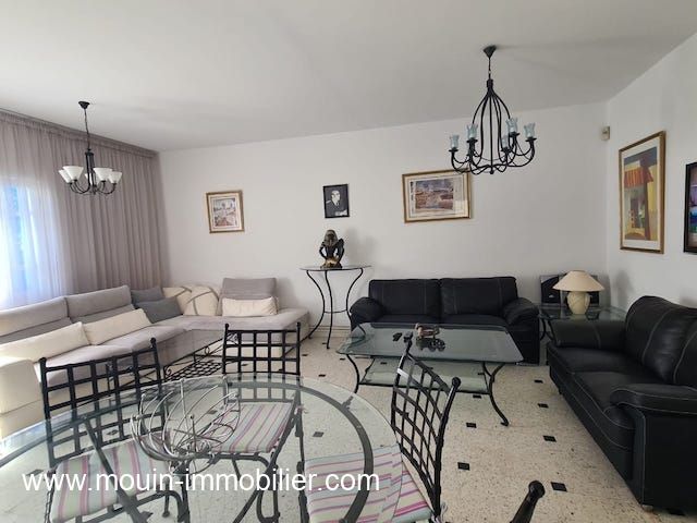 A louer à l'année un spacieux et lumineux appartement situé au rez de chaussée d’une résidence gardée et sécurisée à Hammamet proche d’Hôtel Sindbad.