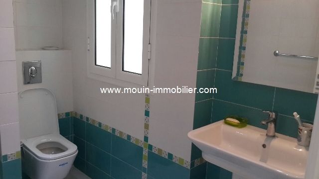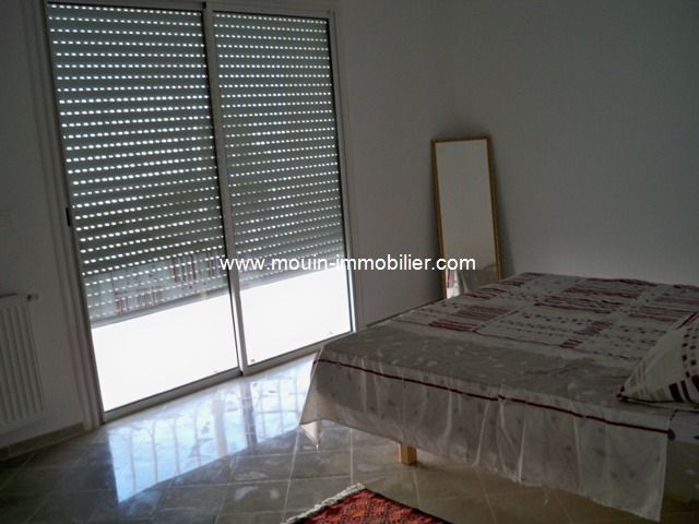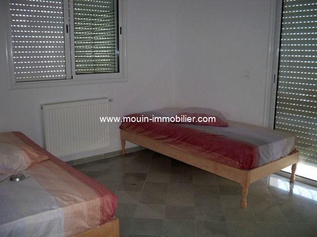 A louer pour des courtes durées un bel appartement situé à l'étage d'une villa à Yasmine Hammamet. Il est composé d'un salon, un coin à manger, une cuisine américaine installée, deux chambres à coucher et une salle de bain. L'appartement est équipé de la climatisation et il dispose d'une terrasse et d'une entrée indépendante.