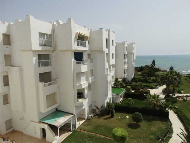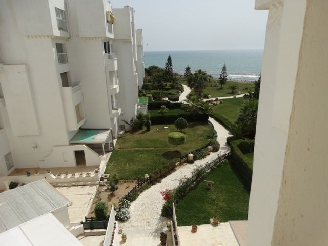 A louer pour des courte durée chez l'agence TPS IMMOBILIERE Hammamet, un magnifique appartement dans une résidence pieds dans l'eau, accès direct à la plage, plage privée résidents avec parasols, appartement haut standing, il se compose de 2 chambres a coucher, salon avec vue de mer, salle de bain, salle d’eau, cuisine aménagée et équipée, climatisation centrale, ascenseurs, espaces verts (parc gazonné, arboré et fleuri), gardiennage permanent 24h/24h.