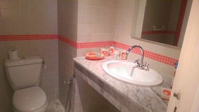 Tout le sol de l'appartement est revêtue de marbre blanc.