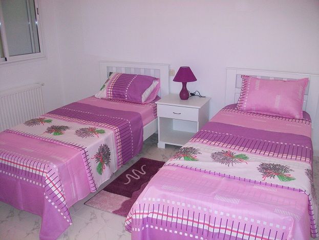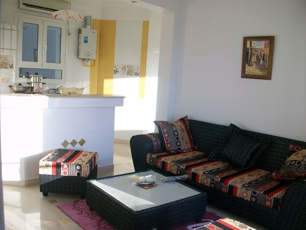 A louer ou à vendre, dans un immeuble neuf, des appartements à Hammamet à 100m de la mer. Ils se composent d'une chambre, un salon, une salle de bain, une cuisine aménagée, un balcon. Ils sont tous équipés du chauffage central, de climatiseurs, interphone...