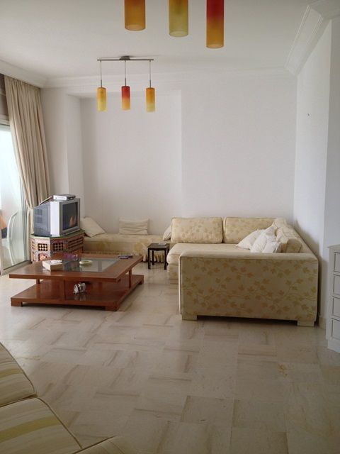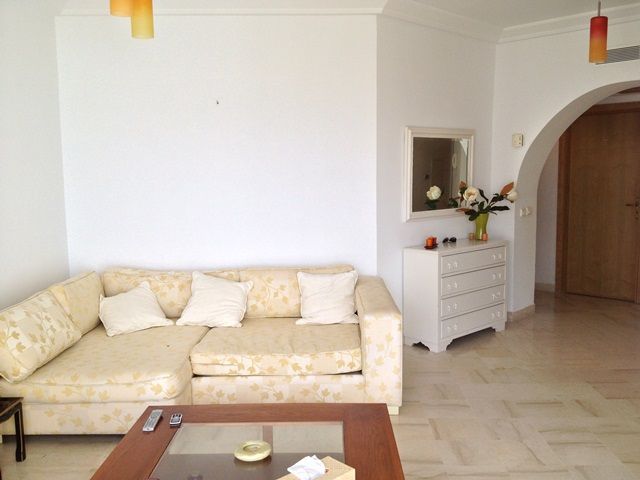 L'appartement comporte deux chambres à coucher, un grand salon avec balcon qui donne sur la mer, une cuisine moderne et bien équipé et une salle de bain.