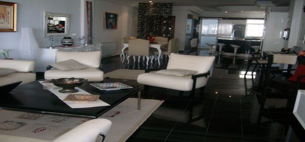 A vendre ou à louer à l'année Sousse dans un emplacement excellent au coeur de la zone touristique ,un appartement chic ,luxeusement meublé composé d'un immense séjour avec une terrasse vue panoramique de la mer et les hotels ,deux suites parentales avec vue mer ,cuisineà l'americaine bien agencée et equipée ,chauffage central,climatisation,place parking au sous sol.prix de location 2200 dt/mois prix de vente 500000 dt