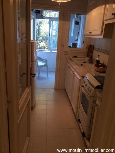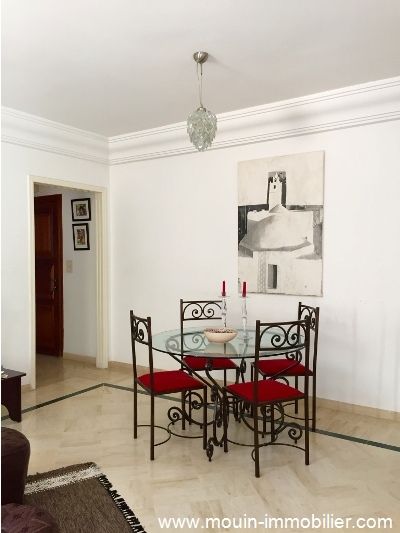A louer à l'année un bel appartement meublé, situé dans un résidence gardée et à deux pas de la plage et commerces. Il est composé d'un salon avec un balcon, coin à manger, une cuisine avec un séchoir, une chambre à coucher aménagée d’un grand placard et une salle de bain. L'appartement dispose d’une place de parking et il est équipé de climatiseur.Prix : 600 DT/mois