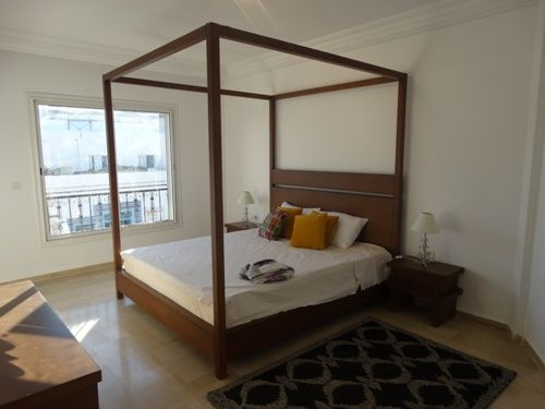 A vendre à l'année chez TPS Immobilière Hammamet, un très joli appartement de haut standing au 1er étage, sis au centre-ville d'Hammamet dans une résidence gardée avec piscine et ascenseur, cartier chic et résidentiel.