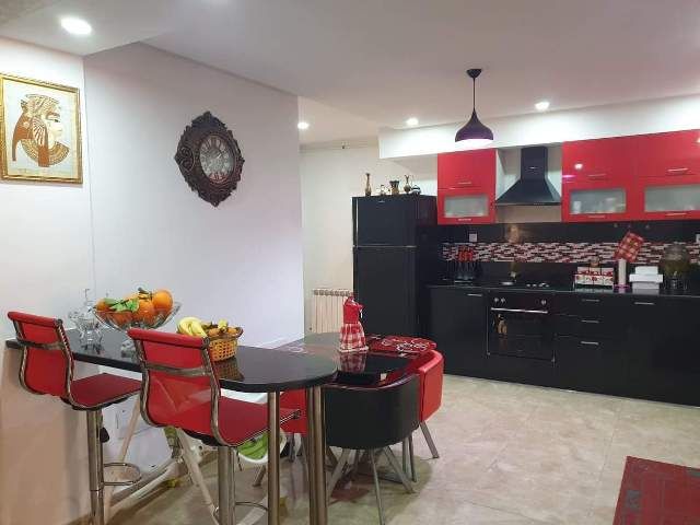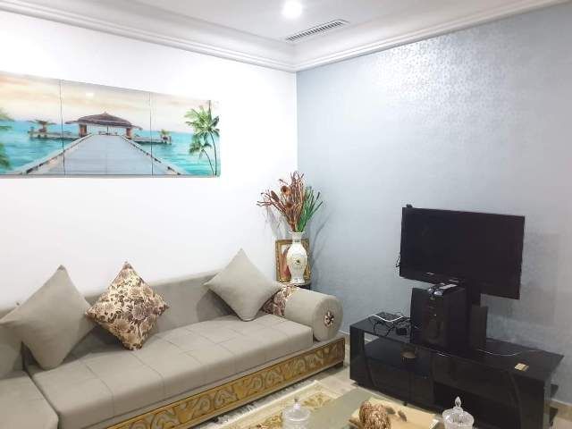 A louer à l’année un bel appartement richement meublé situé à Hammamet – Rue Moncef Bey, au rez de chaussée un immeuble calme et sécurisé.