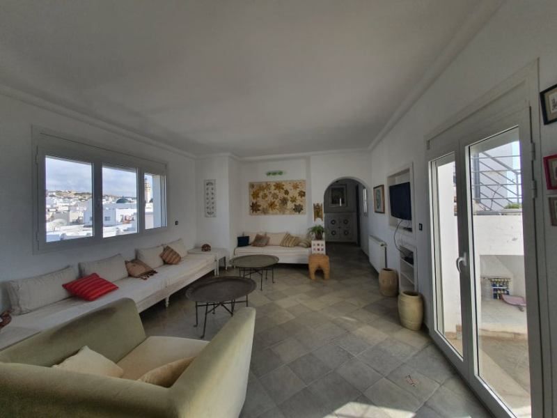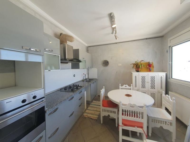 A louer à l'année chez l'agence TPS Immobilière Hammamet, un coquet appartement au 3ème étage avec vue sur mer de style mauresque érigé sur deux niveaux, situé dans un quartier calme et sécurisé à Hammamet et pas loin du centre-ville.