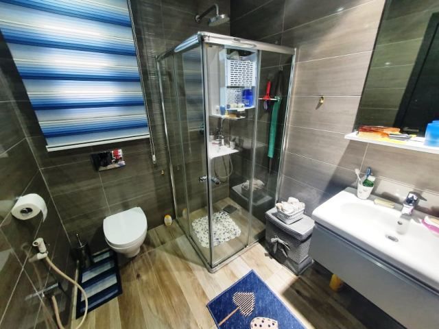 L’appartement comporte un grand salon lumineux qui s’ouvre sur un balcon, une belle cuisine moderne bien équipée avec un séchoir, deux chambres á coucher avec leurs dressings et une salle de bain avec une cabine de douche et toilette.