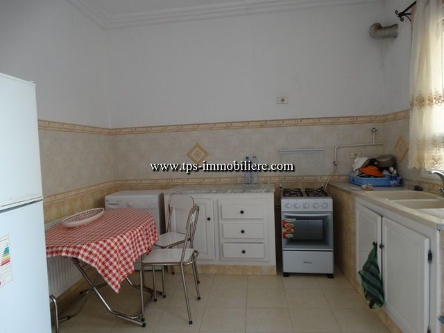 A louer pour les vacances chez TPS Immobilière Hammamet, un coquet appartement reez de chaussé, situé à la corniche d'Hammamet à 50 m² de la mer. Il comporte un salon, deux chambres à coucher, une salle de bain et une cuisine avec un séchoir. L'appartement est équipé de chauffage central et de climatisation.