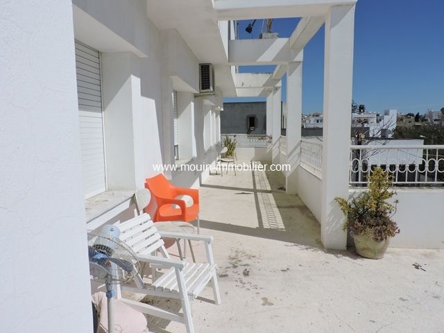 A louer à l’année un étage de villa situé à Hammamet zone corniche, à quelque pas de la plage et à 5mn du centre ville. Il offre un spacieux salon, une salle à manger, une cuisine, trois chambres à coucher, une salle de bain et une belle terrasse. Il est équipé de chauffage central et de climatisation.
