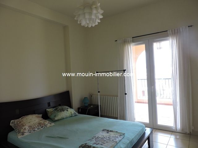 A louer à l'année un spacieux appartement situé à l'étage d'une résidence gardée à Hammamet Sud. IL se compose d'un grand salon-salle à manger ouvrant sur une agréable terrasse, une cuisine équipée, deux chambres à coucher, une salle de bain et une salle d'eau.