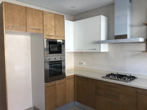L’appartement est de 127 m² couvert, composé d’un spacieux salon qui donne sur la terrasse, deux chambres à coucher avec des dressings, une salle de bain, une salle d’eau et une cuisine moderne installée bien équipée.