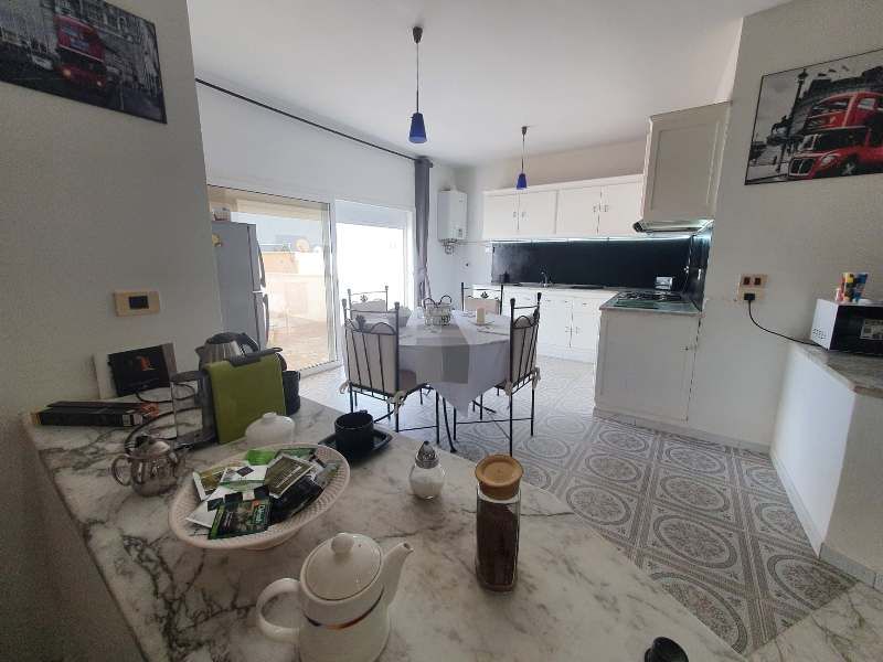 Superbe offre à ne pas rater et vraiment à saisir : une vente d'un bel appartement bien meublé chez l'agence TPS Immobilière Hammamet d’une surface totale á peu près de 200 m² (inclus un balcon et une grande terrasse) avec vue sur la mer, bien situé au 2eme et dernier étage d’une maison à Mrezga Hammamet.