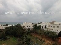 A louer à Hammamet, à la zone touristique Hammamet Nord, un bel appartement s+2 avec une très belle vue de mer. Un appartement au 2eme étage non meublé, se compose d’un salon, deux chambres à coucher, une cuisine et une salle de bain.une belle vue de me par les fenêtres, une belle terrasse pour passer de beaux moments. Appartement équipé de chauffage central.Le prix:650 DT/mois