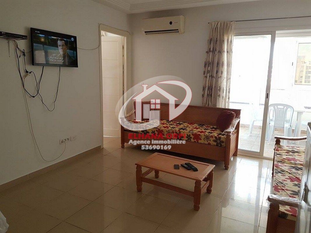 gence elhana met en location pour vacance un très bel appartement (s+2) pieds dans l'eau pour votre repos et tranquillité climatisé dans un emplacement très touristique et adorable, mis au 2 ème étage d'un immeuble avec ascenseur bien sécurisé,gardien 24/24,en face de la mer et hôtel rio el mansour .