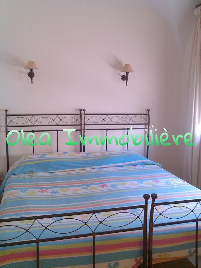 Entrée, salon donnant sur une terrasse, séjour, cuisine équipée, 2 chambres, salle d'eau.