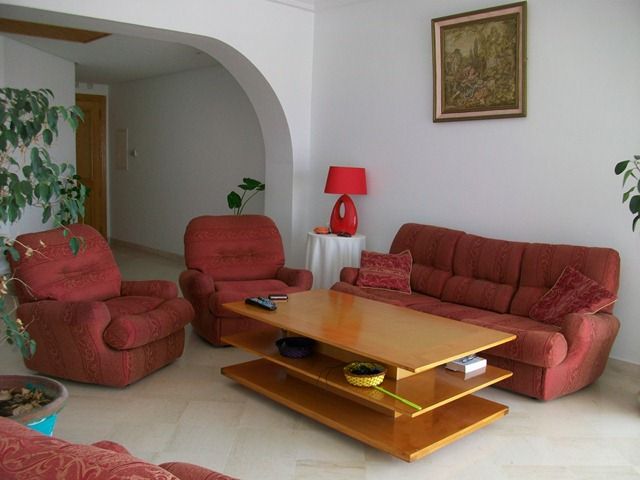 A louer à l'année un spacieux appartement de type S+3 avec vue mer. Il est situé dans une résidence pieds dans l'eau à Hammamet. Il se compose d'une suite parentale, deux chambres, une salle de bain, une salle à manger, un salon, cuisine et séchoir. Il est équipé du chauffage et de la climatisation centrale.