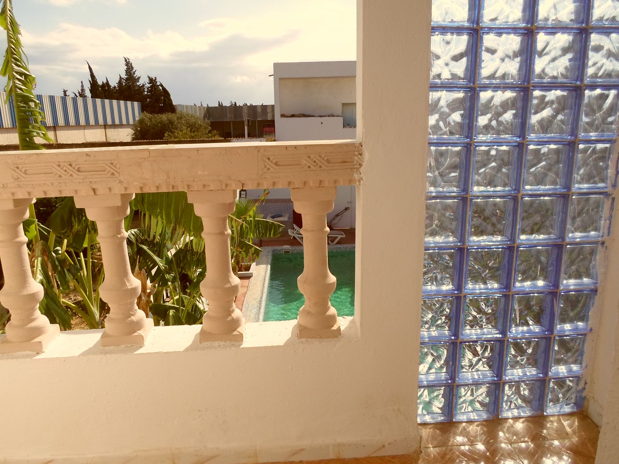 AV une belle villa sur deux niveaux avec piscine. La villa se trouve dans une zone résidentielle pas loin de l’hôtel Miramar. La villa surgit sur un terrain de 300 m² dont 180 m² couverts. La piscine fait 12 mètres sur 6. Au rez-de-chaussée, un salon-kitchenette, un coin repas, une salle d’eau et une terrasse arrière avec un puits. A l’étage deux chambres suites, une avec douche italienne et l’autre avec jacuzzi.