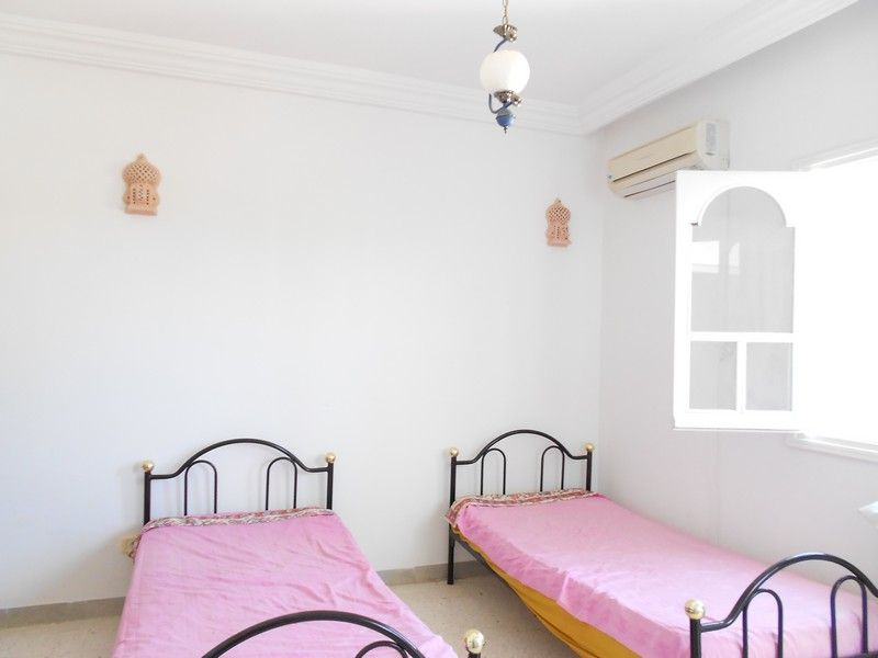 AV dans une belle résidence gardée à Hammamet Nord pas loin de la résidence Jannet, donc pas loin de la mer, un magnifique duplex avec terrasse et entrée indépendante, abri voiture et coin jardin. Le duplex est composé au rez-de-chaussée d’un salon, une cuisine ouverte sur le jardin et une salle d’eau. A l’étage deux chambres à coucher avec balcon et une salle de bain. Zone résidentielle et chic. Superficie terrain presque 120 m² dont le jardin et l’abri voiture.
