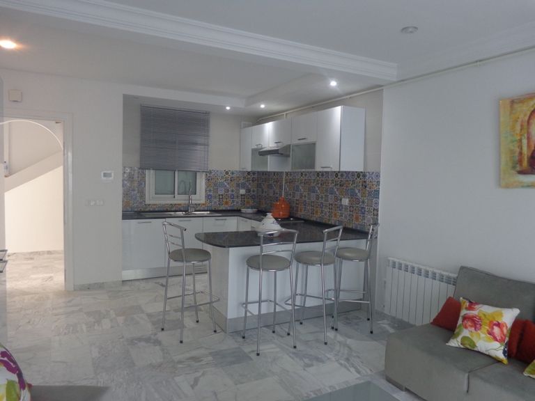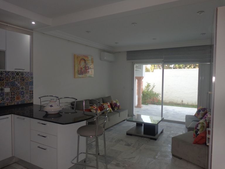 av un studio s+1 de haute standing très bien aménage situe dans un quartier calme proche 2mn de la plage et de la zone touristique dans une résidence garde avec piscine collective il se compose de suite: cuisine très bien aménage un salon et une terrasse et une chambre a coucher et une salle d'eau