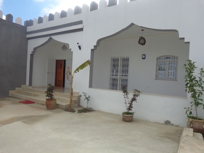 composée d'un haul, grand salon, séjour , deux chambres à coucher , cuisine bien équipée, salle de bain avec douche extérieur,avec entrée d'une voiture et jardin de 350m2 .
