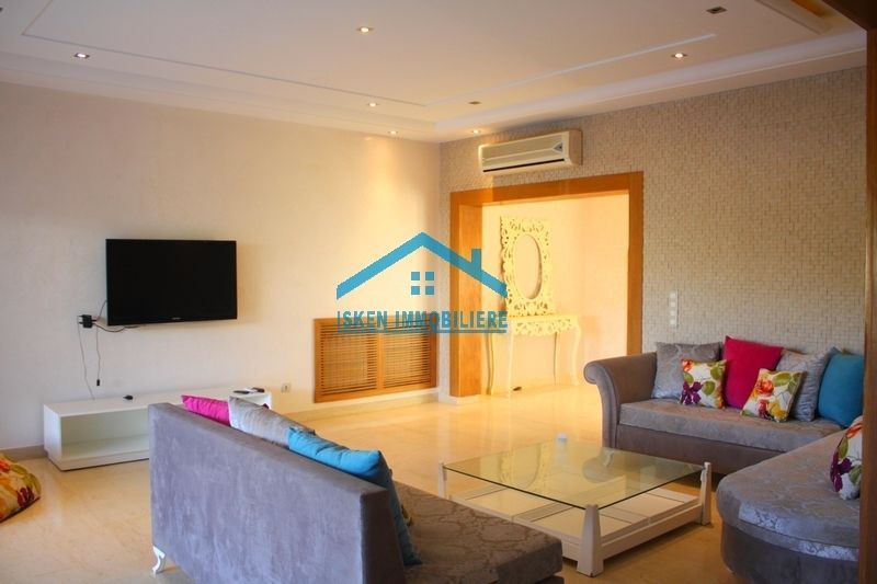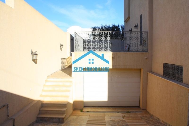 A vendre une villa très haut standing avec piscine, style américain coté hôtel Hammamet Garden la ville est composée d’un grand salon avec Terrace donnent sur la piscine une cuisine moderne et équipée, une chambre a coucher avec salle d’eau douche, au premier étage ; 3 chambres suites avec dressings .