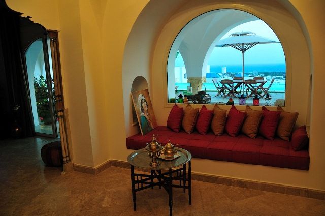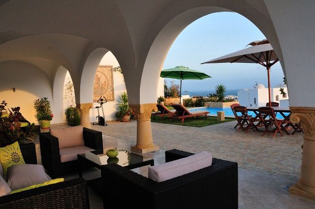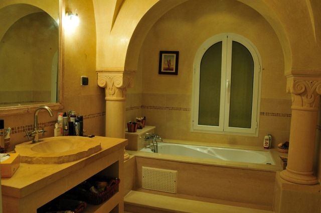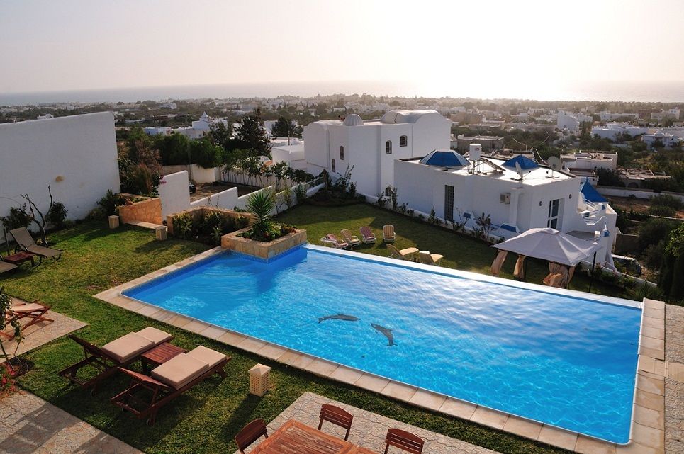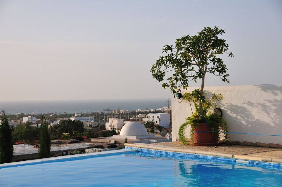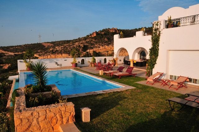 A vendre, sur les hauteurs d’Hammamet, une somptueuse villa qui domine tout Hammamet. Magnifique villa érigée sur deux niveaux sur le flanc de la montagne. Elle se compose de quatre suites, une salle d’eau pour les invités, une cuisine aménagée et équipée, deux salons avec arcades et un coin oriental avec cheminée pour des moments agréables près du feu. Les salons ouvrent sur une grande terrasse aménagée près de la piscine qui domine toute la ville. Terrasse ornée de tableaux en mosaïques. Le jardin se présente sur deux niveaux, gazonné et arboré entourant la piscine à débordement dans le premier palier et aménagée avec meuble et tente de jardin.Un merveilleux spectacle et ravissement des yeux à la nuit tombée lorsque les lumières de la ville scintillent. La villa est équipée du chauffage central et de climatiseur dans toutes les pièces.