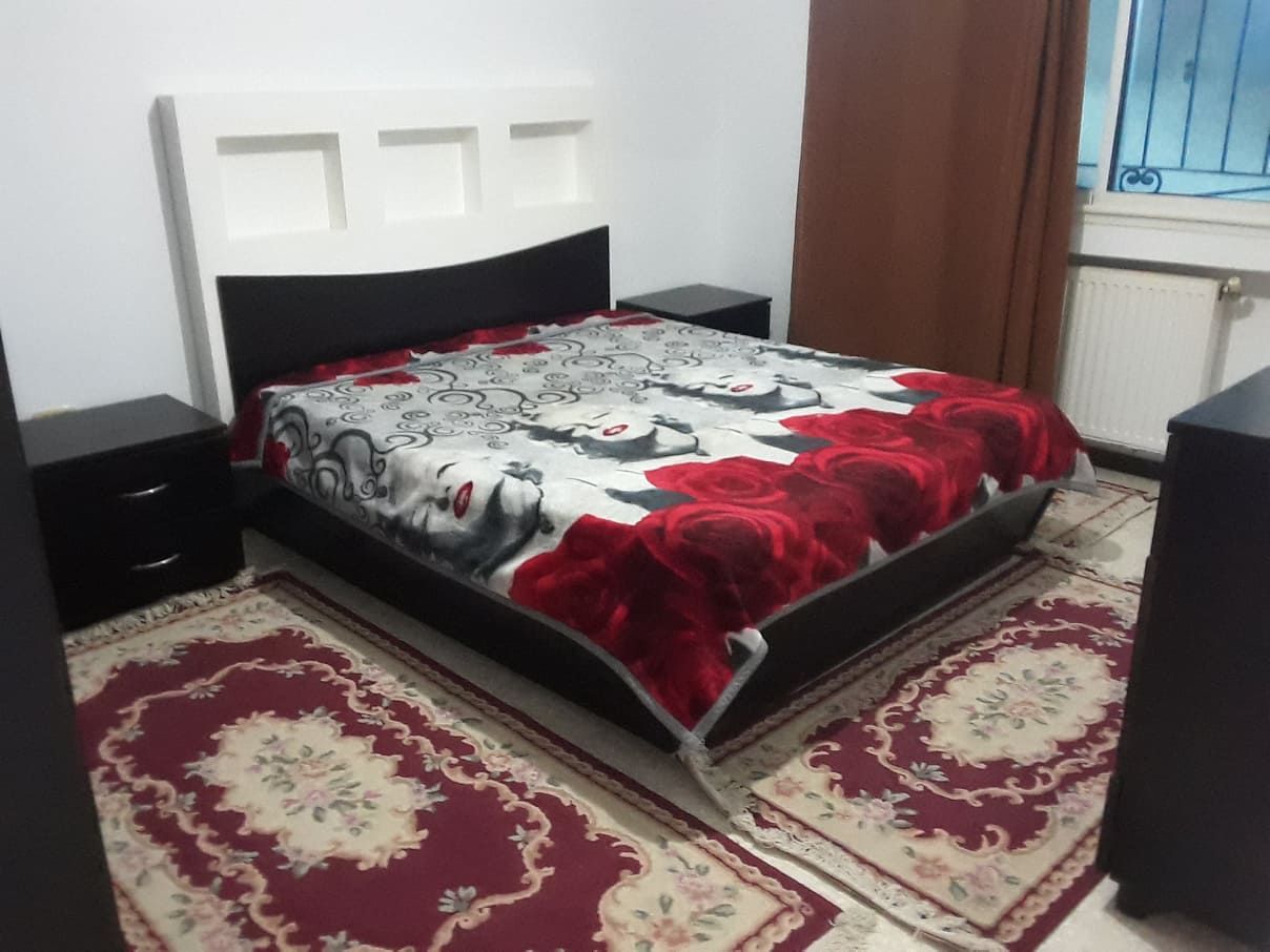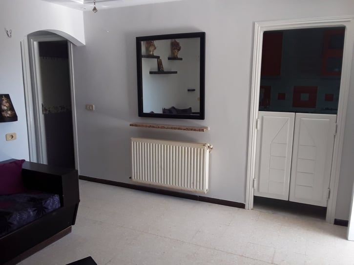 A louer pour toute l'année un appartement bien équipé, en très bon état, au RDC, entrée seulement avec le propriété, composé d’un salon, deux chambres avec dressing, une petite kitchenette bien équipée, une salle de douche et un petit balcon à l’entrée de l’appartement, disposé du chauffage central et climatisation, à Hammamet Nord près du rond point le grand et du batam, emplacement très calme, à deux pas du zone touristique où se trouve hôtel Royal Azur et hôtel Radisson Blu.