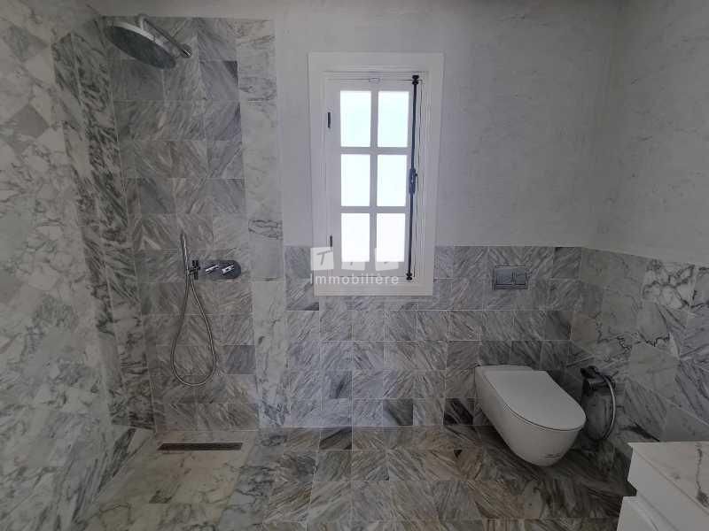 La villa est érigée sur deux niveaux, elle se compose au RDC d’un spacieux salon donnant sur la terrasse comportant une belle cheminée, une suite avec sa propre SDD et dressing, une cuisine aménagée avec ilot central et une salle d’eau pour les invitées.