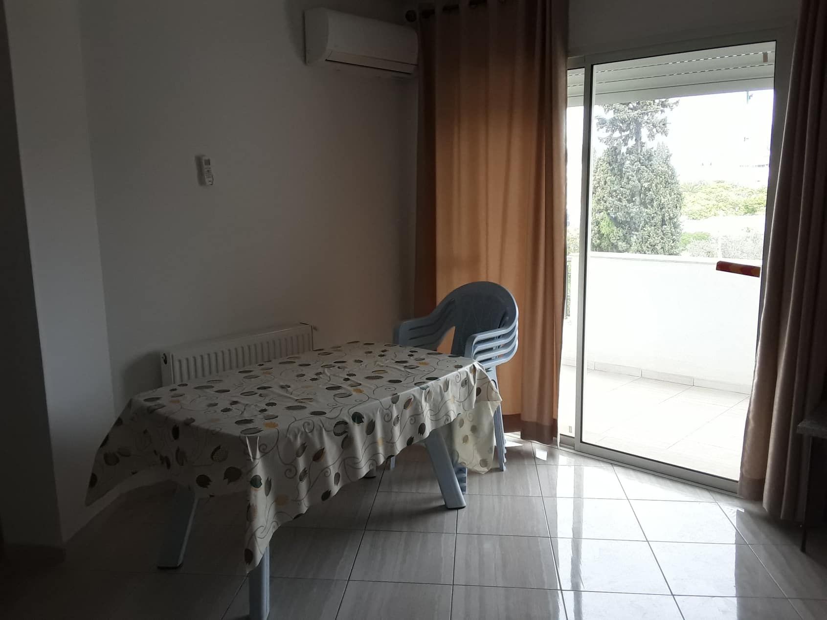 A louer pour toute l’année, un appartement meublé haut standing et spacieux, de type s+2, au deuxième étage, disposé de chauffage central et climatisation, situé dans un immeuble sécurisé à Hammamet très proche de la gare.