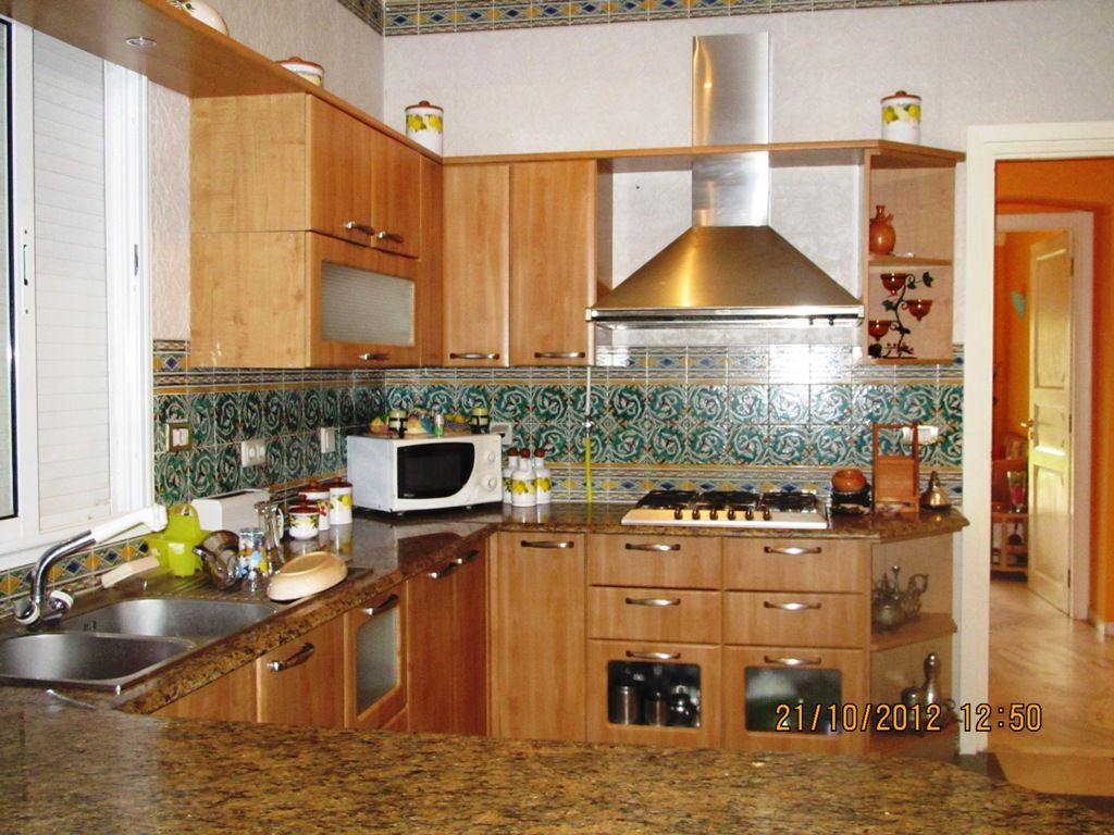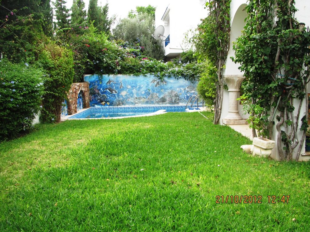 A vendre, Villa bâtie sur trois niveaux, jouit d’une vue imprenable sur la mer, située à 2mn à pied de la plage dans un quartier résidentiel et calme, à proximité des commerces et animations. Cette jolie villa est distinguée par son architecture typique (arcades, voûtes, fer forgé avec motifs andalous, plafond décoré avec motifs...) et sa décoration moderne ; se compose au sous-sol d’une cuisine, salon et salle d’eau, au RDC on a salon/salle à manger, séjour, cuisine aménagée et équipée avec espace repas, au 1er étage on trouve au hall un petit salon bambou avec une belle terrasse, une suite parentale avec salle bain placard encastré et une terrasse, 3 belles chambres avec placards encastrés dont 2 avec terrasse, salle de bain commune. Cette villa jouit aussi d’un beau terrain gazonné et planté, une piscine, une douche, une grande terrasse couverte et une autre petite terrasse ombragée par les feuilles des palmiers et des bambous et aménagée de table de jardin et banc en bois massif et un abri voiture.