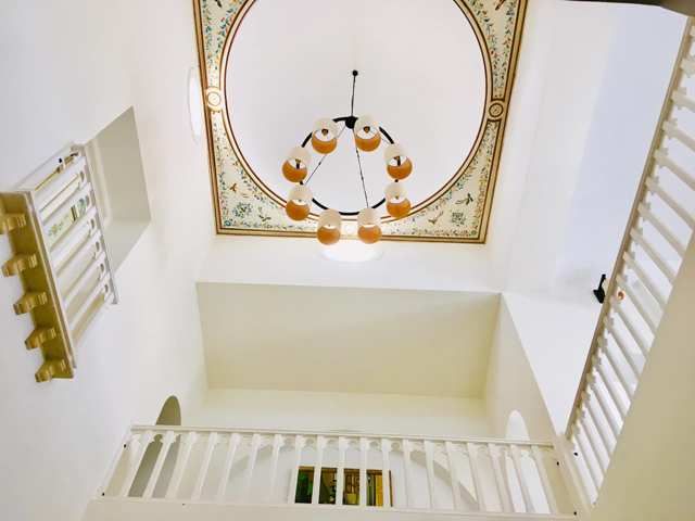 Le rez de chaussée nous accueille avec une fontaine qui trône dans le hall et qui précède un salon d’hier comprenant une cheminée autour de laquelle les soirées hivernales seront des plus chaleureuses.