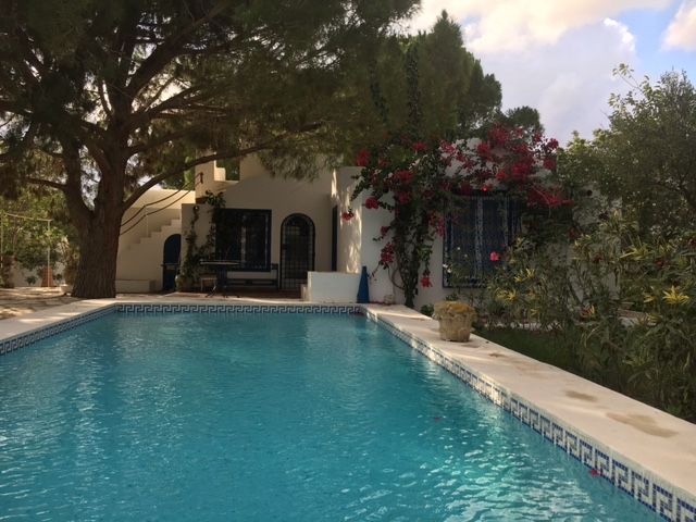 La propriété est équipée de chauffage central et elle dispose d’une belle piscine entourée de différentes plantes décoratives. Prix : 1300 DT/mois