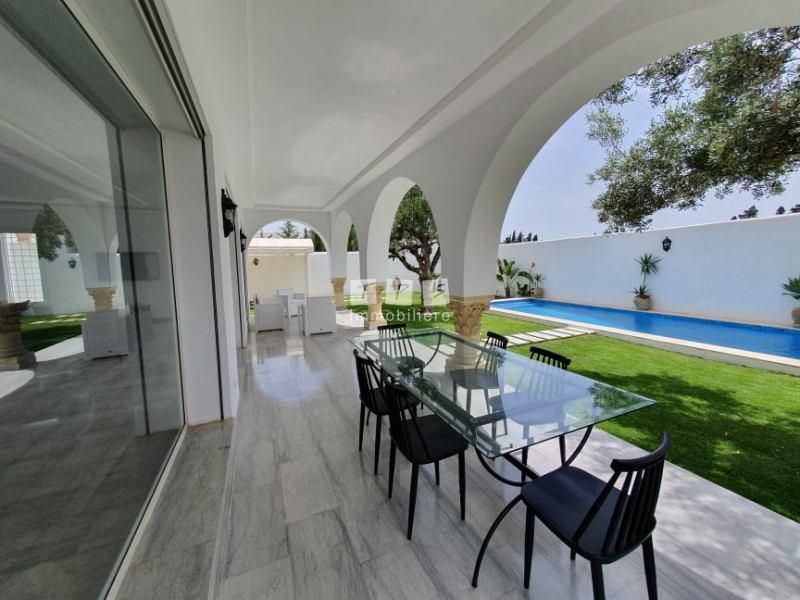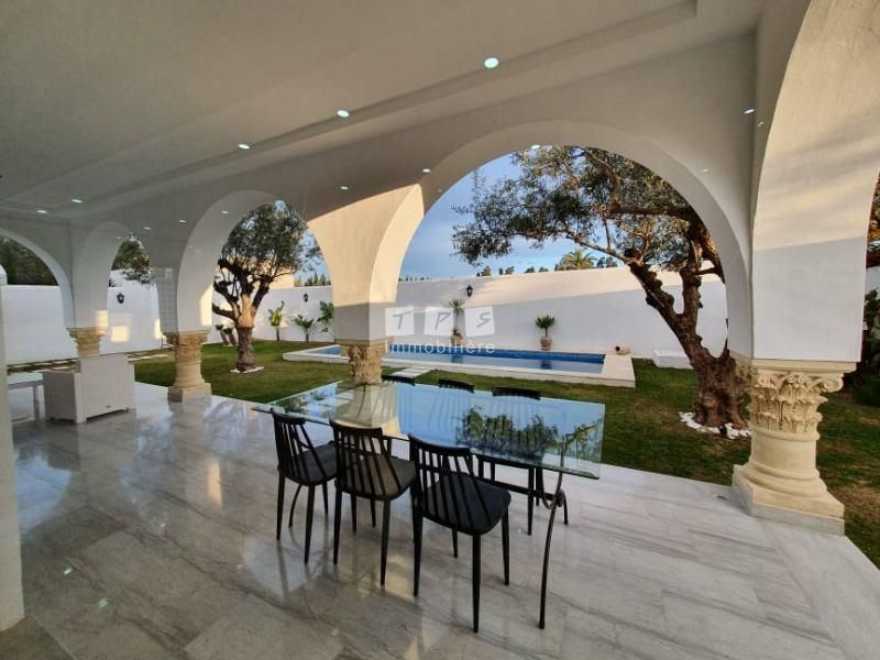 A louer pour toute l'année chez l'agence TPS Immobilière Hammamet, une magnifique villa toute neuve alliant le style moderne avec le style arabesque avec des arcades et la belle architecture.