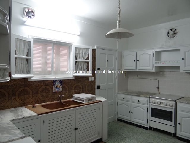 A louer jolie maison située à Hammamet, à 800m de la plage et à 10 min du centre ville. Elle se compose de trois chambres à coucher, coin bureau, une salle de bain, salon – salle à manger et cuisine aménagée avec coin repas. La maison est équipée du chauffage central et de climatiseurs, chauffage solaires, jardin et accès piscine.