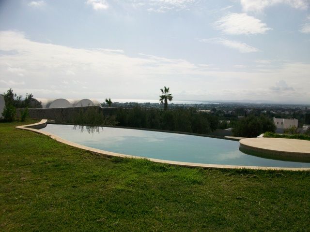 Elle comprend un jardin gazonné et une piscine qui domine Hammamet.